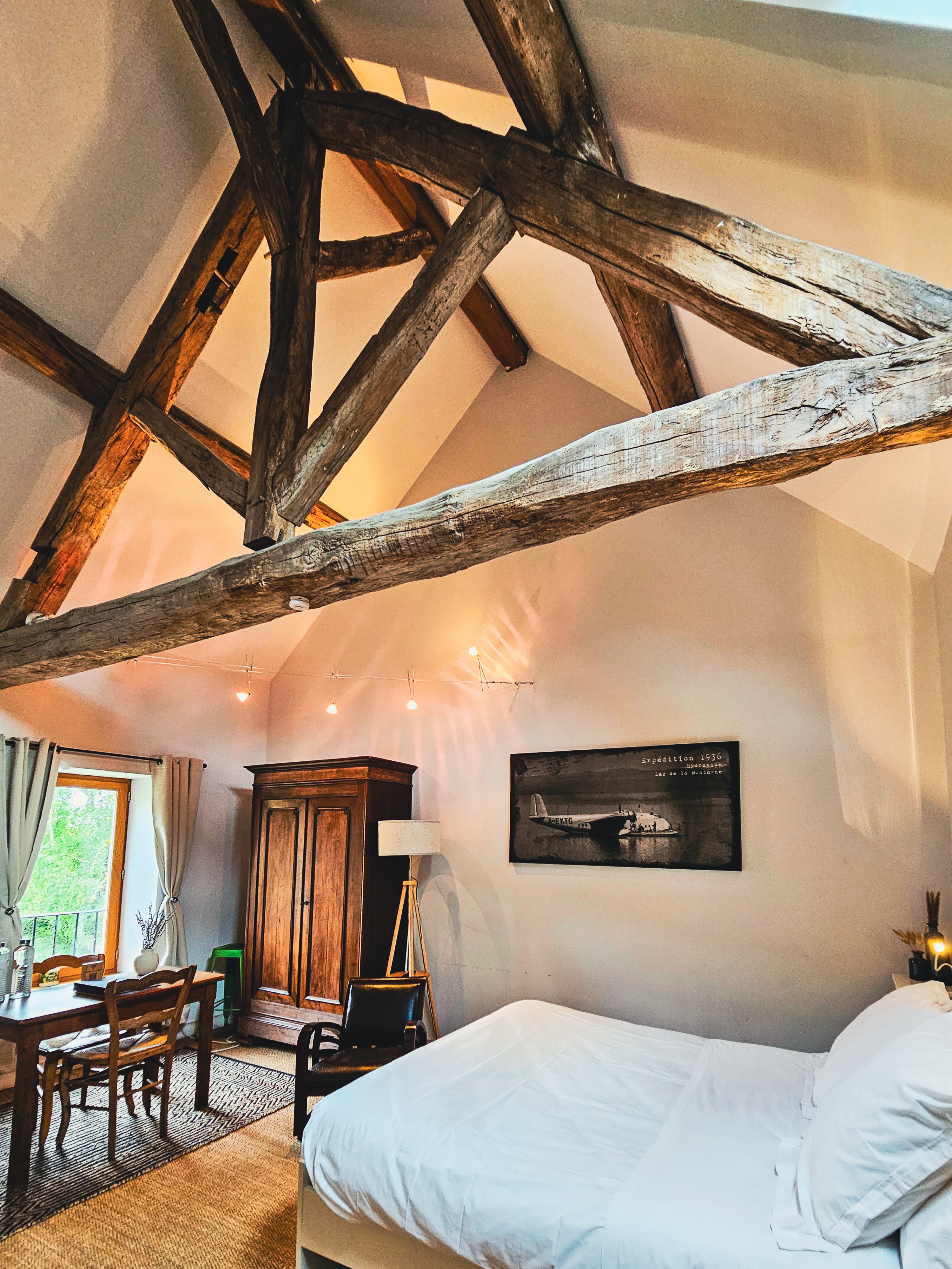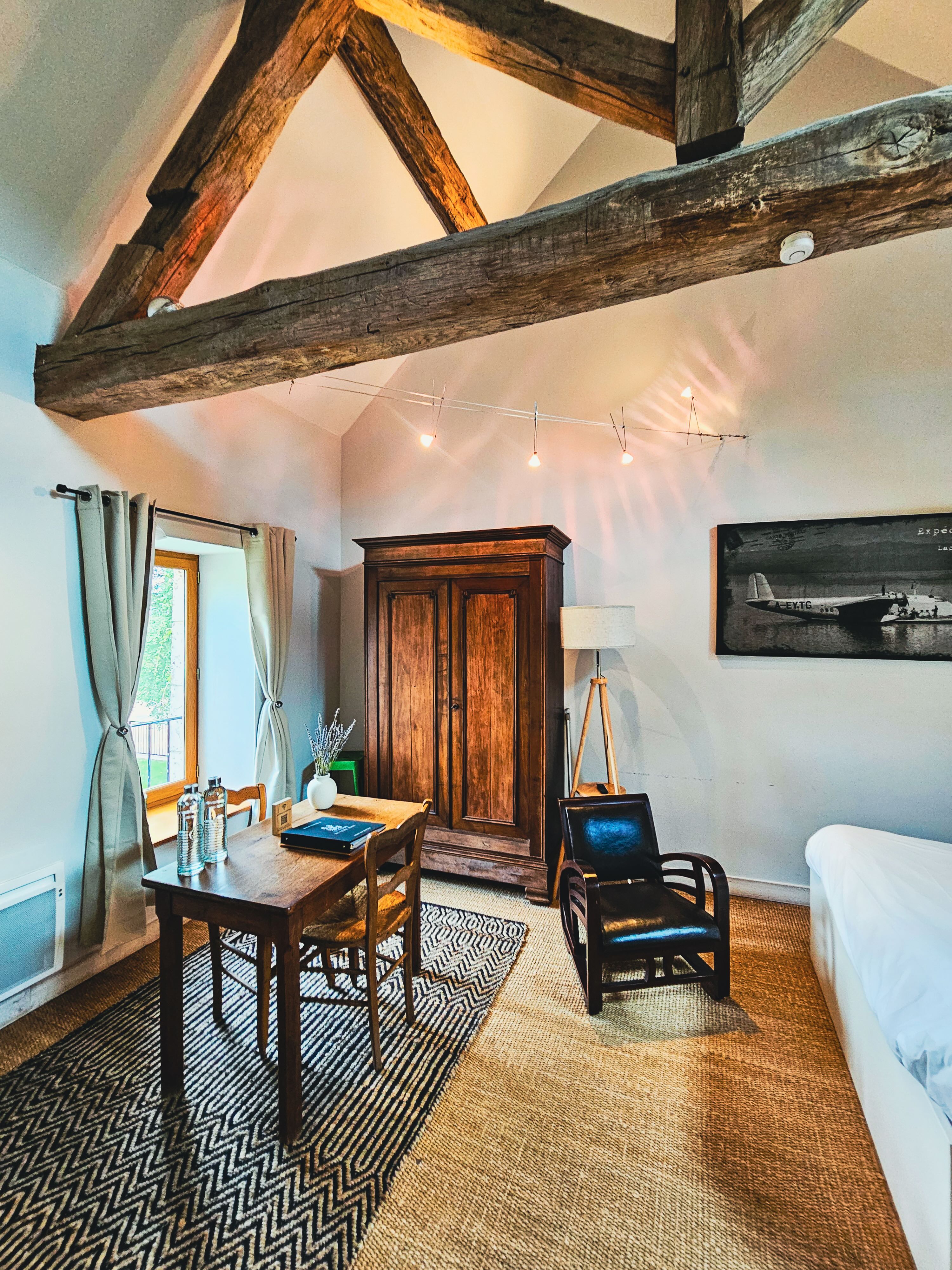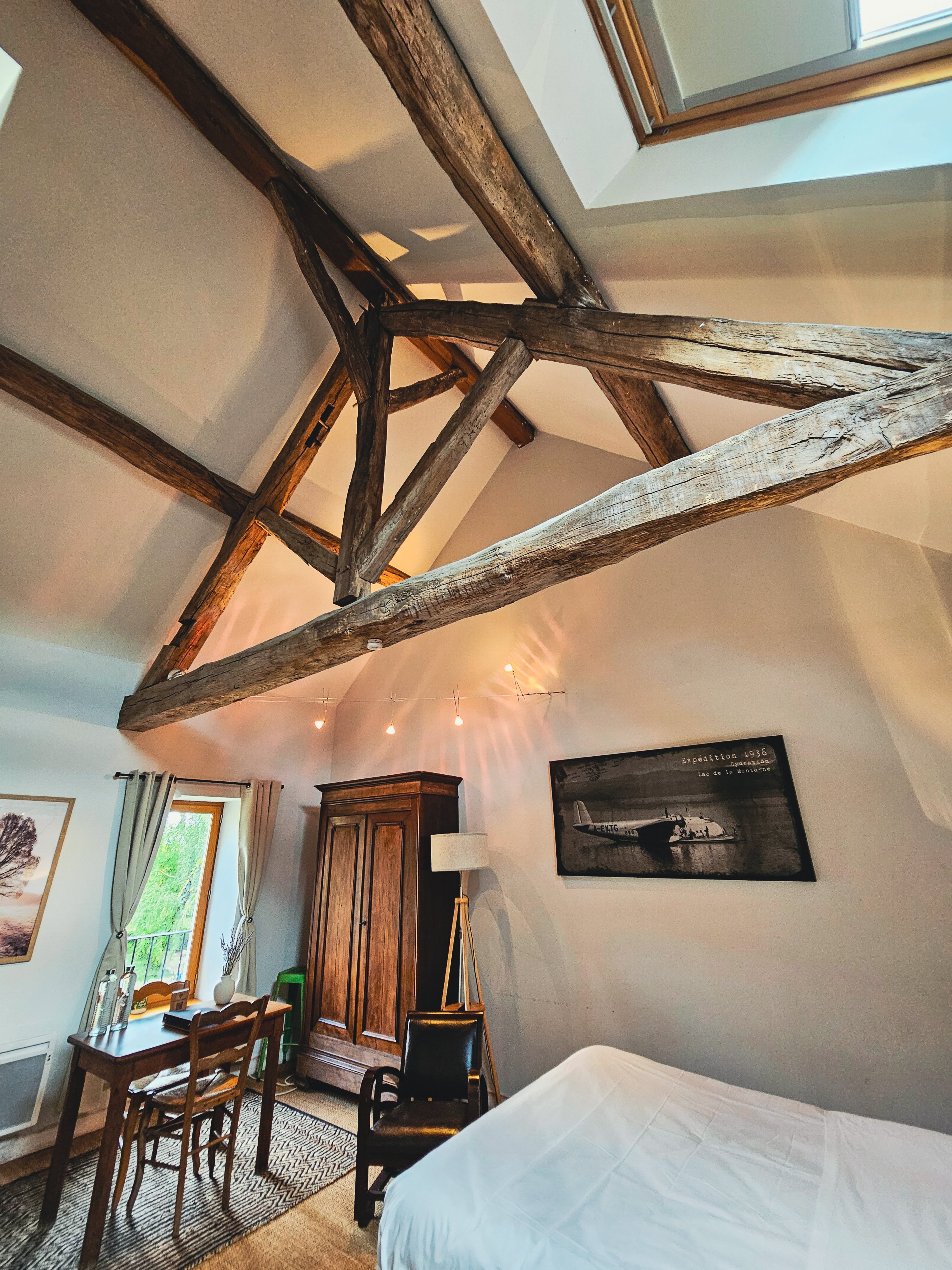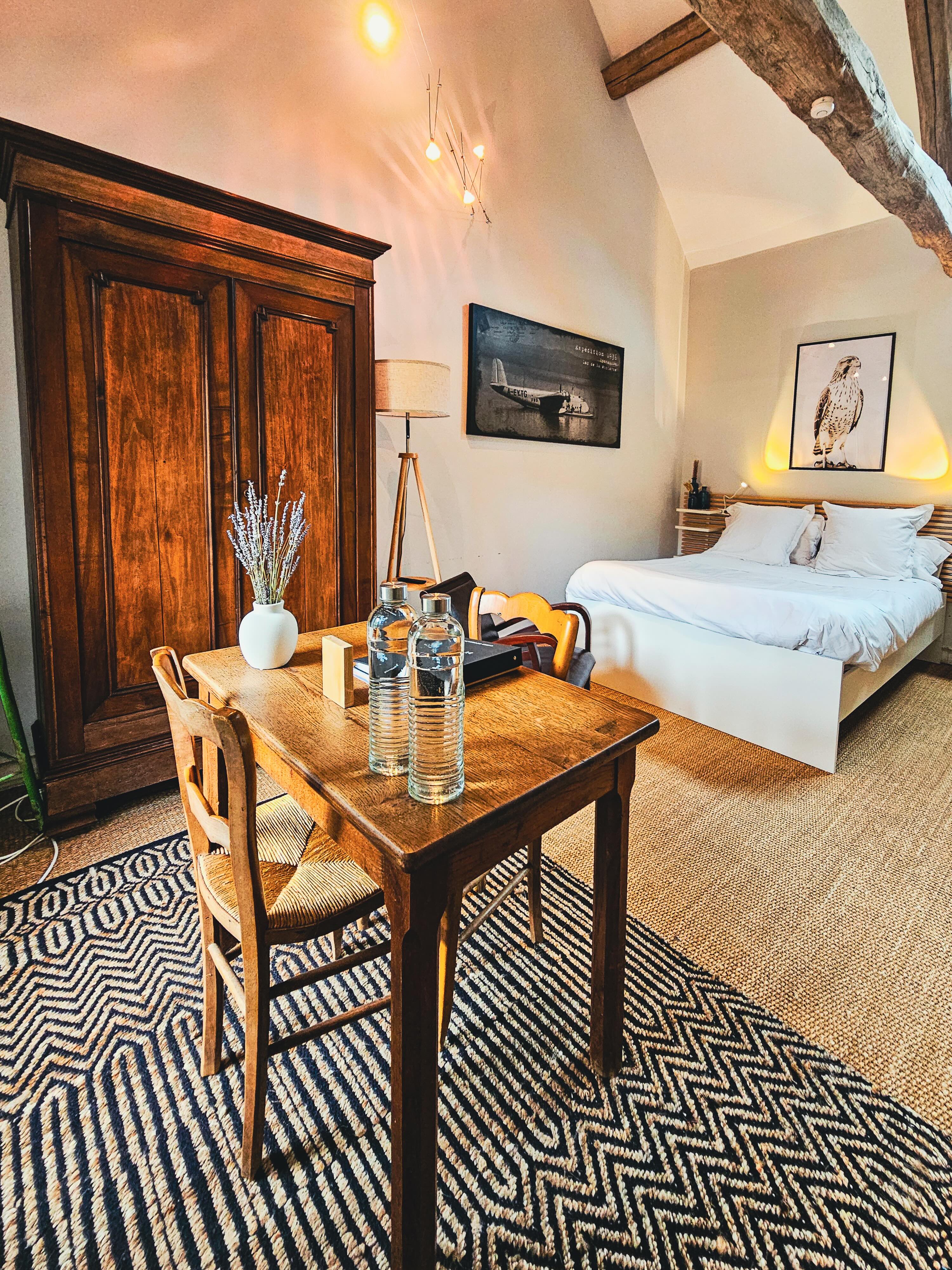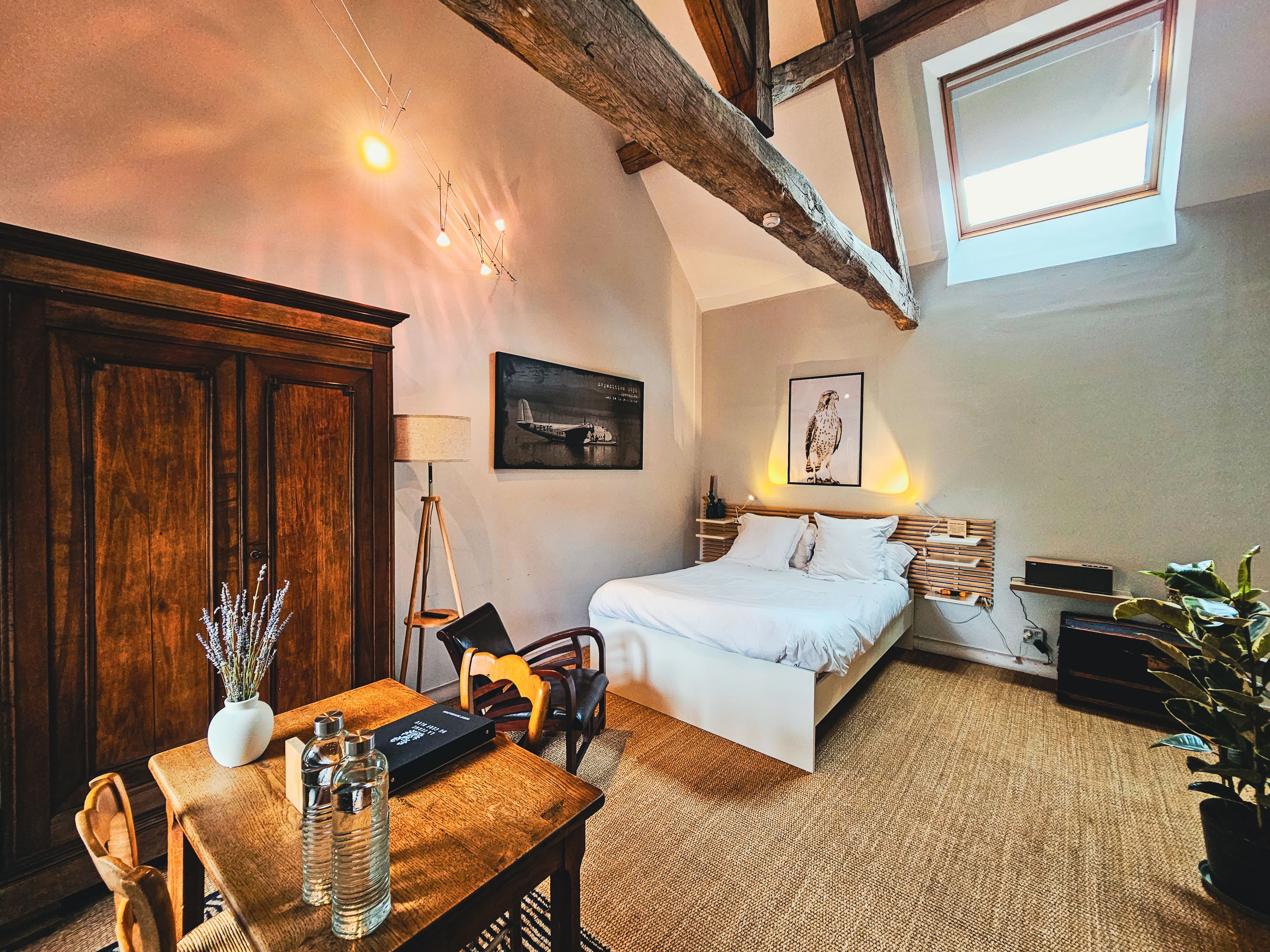 This bright upstairs room looks straight out over the garden, with a private ensuite and a bit of extra space for small families. With full access to the yard and shared Jacuzzi—plus breakfast spots and castles a short drive away—this is a peaceful, charming spot for exploring Noyers and the surrounding areas.