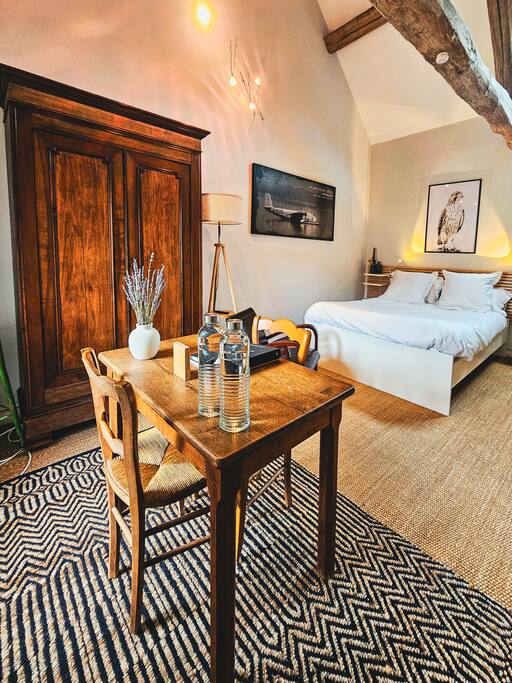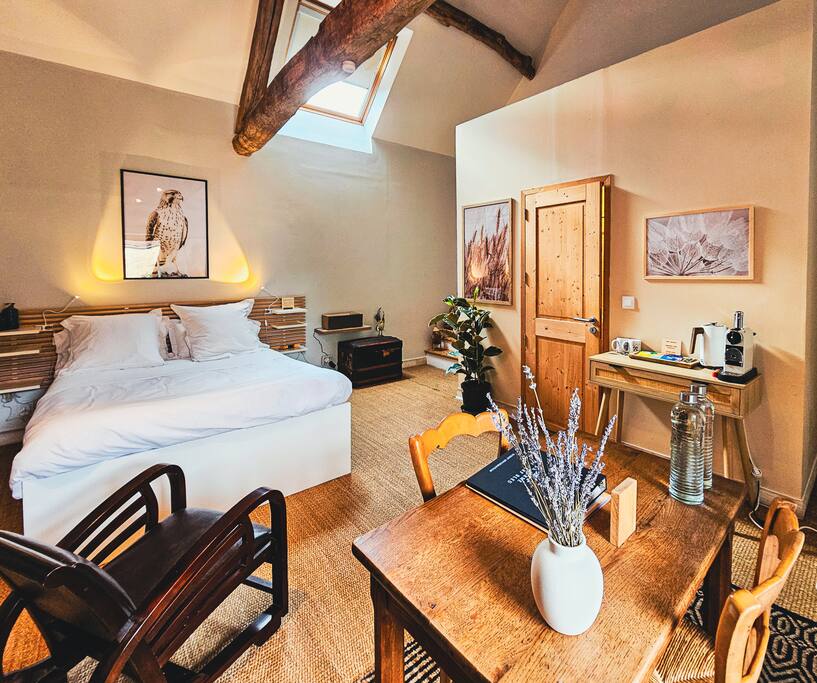 • 1 private room: ⎯▹ 1 Double bed • Private ensuite w/ walk-in shower + toilet • Garden view • Located on 1st floor (1 flight of stairs) • Fresh bedding + towels provided • Free parking on premises • Wi-Fi • Dedicated workspace • Hair dryer • No Pet • Baby bed available • Shared Jacuzzi access (check with host) • Lock on bedroom door Experience Overview ~ • Private upstairs room • Ensuite bathroom • Garden view from window • Shared garden + Jacuzzi • Self check-in via keypad • Quiet, countryside setting Nearby Things to Do ~ ✓ Chablis Wineries -> 29 minutes Large wineries, cave, market, etc ✓ Château d’Ancy-le-Franc ⎯▹ 15 min drive Elegant Renaissance château with gardens and guided tours. ✓ Abbaye de Fontenay -> 25 minutes UNESCO World Heritage Site. Former Cistercian abbey (1118!) ✓ Noyers-sur-Serein ⎯▹ 10 min drive Medieval village with art galleries and timbered houses. ✓ Canal de Bourgogne ⎯▹ 15 min drive Flat bike paths and gentle walks along the canal. ✓ Vézelay Basilica ⎯▹ 40 min drive UNESCO hilltop abbey with panoramic countryside views. Nearby Dining ~ La Mirabelle (French) ⎯▹ 17 min drive Le Trois Bourgeons (French) ⎯▹ 31 min drive La Parenthèse (Modern Bistro) ⎯▹ 24 min drive Logis Hôtel le Marronnier (Traditional) ⎯▹ 15 min drive Au Fil du Zinc (Contemporary French) ⎯▹ 31 min drive FAQs ➤ Can I work remotely here? Yes — stable Wi-Fi and a simple desk setup. ➤ Are pets allowed? Yes — well-behaved pets are welcome. ➤ Is the village walkable? Yes, but very small — bring a car for shops and restaurants. ➤ Where do we park? Free parking directly on-site. ➤ Is the Jacuzzi private? No — it’s shared with the main house. Ask the host about availability. ❤️ Meet Your Host I love Sanvigne and our wonderful guests who come to visit! Need anything at all? I’m just a text away! Your host, —Guillaume