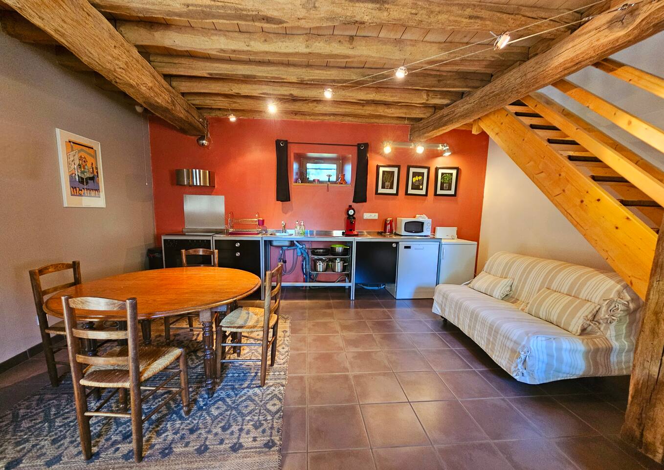 This 1BR apartment in Étivey fits four, with a comfortable double bed upstairs, a pullout sofa in the main room, and a private garden just outside the door. Grill dinner while the kids play, take a soak in the shared Jacuzzi tub, or take a short (10 minute) drive to Noyers for fresh bread and local cheese—the perfect spot for a short countryside stay!