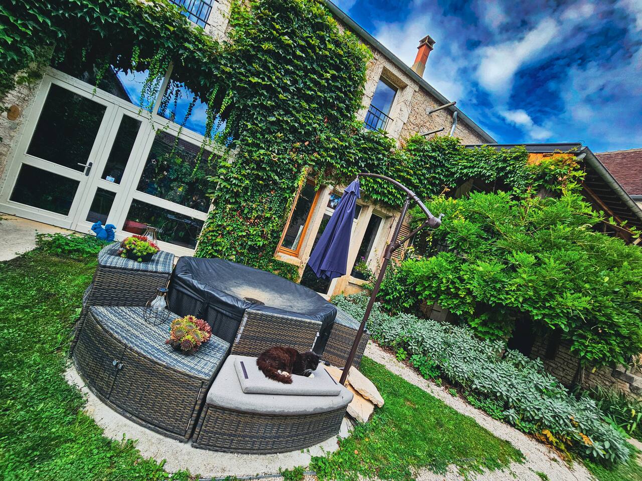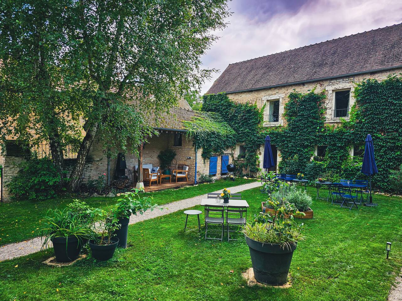 Start your morning with coffee on the terrace, then stroll past cows and cherry trees in the rolling Burgundy hills. This 1BR duplex in Étivey puts you in a tiny village with giant sky views—where neighbors wave and owls hoot at night. Fire up the BBQ, grab wine from Chablis, and kick back while the children explore the garden.